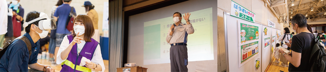 ARを使った避難訓練、災害時に役立つ防災グッズの展示など、多様な防災ブースが並びます。