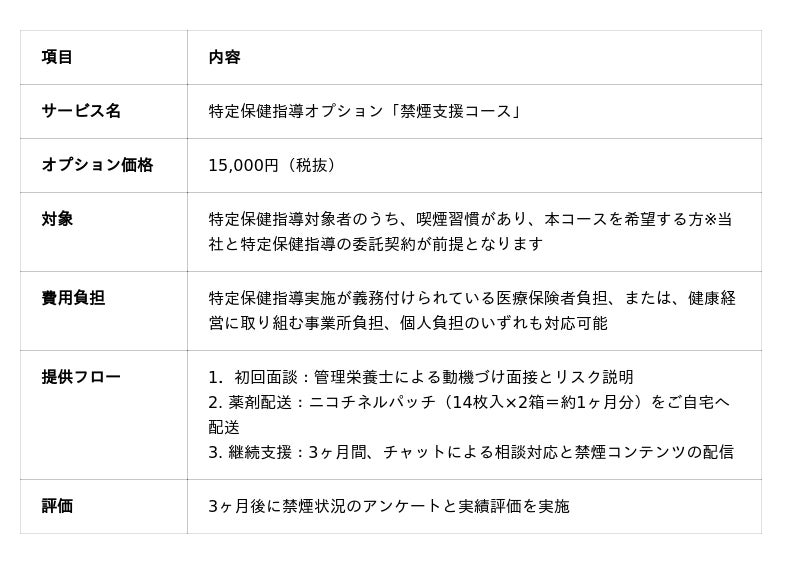 〜日本禁煙学会専門指導者監修のもと、特定保健指導と一体型で支援 〜