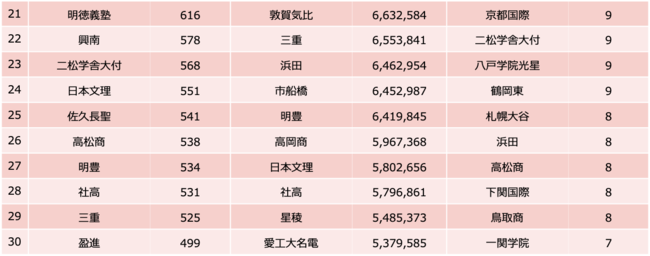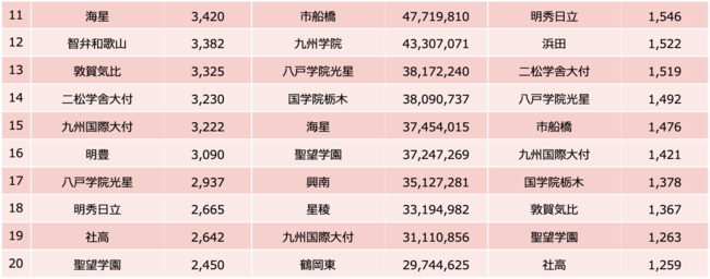 ・新型コロナウイルス集団感染の4校も上位入り