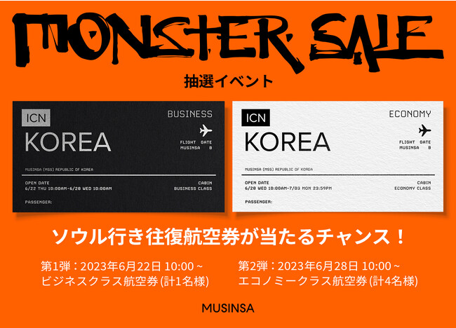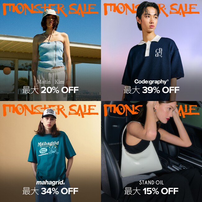 2023年4月、東京・原宿にてポップアップストアを開催して話題を呼んだ、韓国のリアルファッションを世界に発信するファッションストア「MUSINSA GLOBAL STORE(ムシンサ グローバル ストア)https://global.musinsa.com/jp/」にて、2023年6月22日から7月3日まで計12日間の大規模サマーセールイベント「無尽蔵 SALE / MONSTER SALE」を開催。