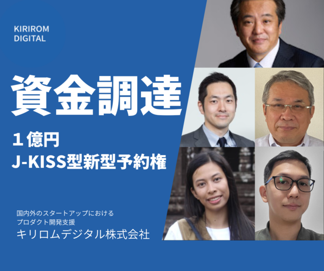 グローバル市場に挑むスタートアップのシステム開発支援を行うキリロムデジタル株式会社(本社:東京都千代田区、代表:猪塚 武、以下キリロムデジタル)は、この度、エンジェル投資家を引受先としてJ-KISS型新型予約権の発行による総額1億円の資金調達を行ったことをお知らせします。