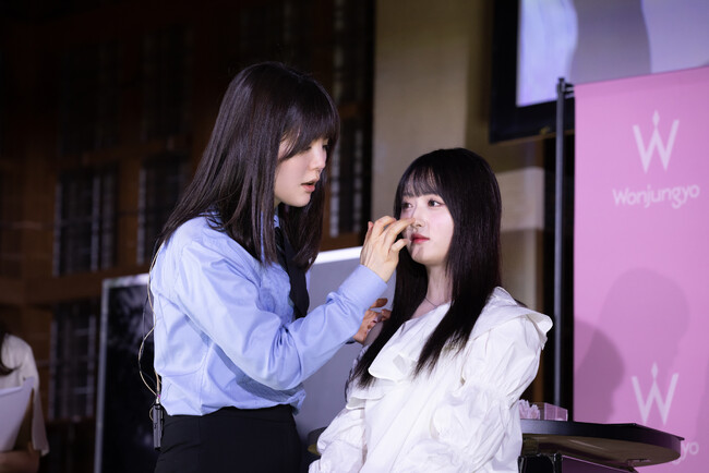 最後には韓国アイドルメイクを牽引するウォン・ジョンヨ氏がゲストとして登場。YouTubeでコラボした際、お互いの涙袋メイクへのこだわりについて話が盛り上がったことがきっかけでコラボ商品が誕生したなどのエピソードを披露。「もともとTWICEのファンで、ウォン先生は憧れの存在。そのウォン先生が私のブランドを使ってくれて、さらにコラボ商品まで作れたなんて感激です!!」(ふくれな)