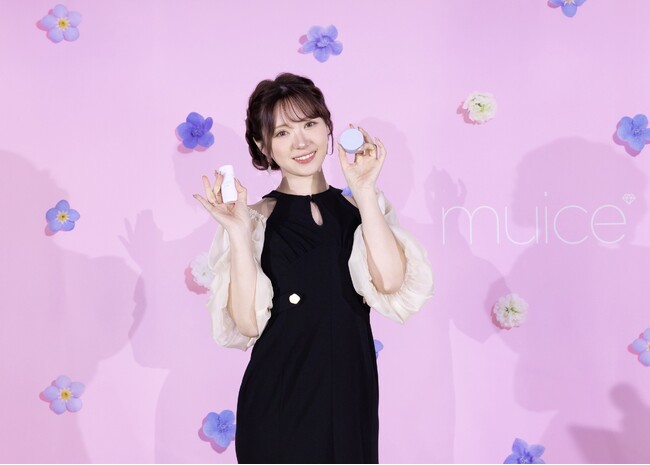 美容系動画クリエイター・かわにしみきがプロデュースする「muice」のセミナーでは、3月から先行発売されている「muice」がローンチされてからの心境やブランドに込めた想いを語るトークショーと、第二弾として発売された3アイテムを使ったメイクショーが行われました。