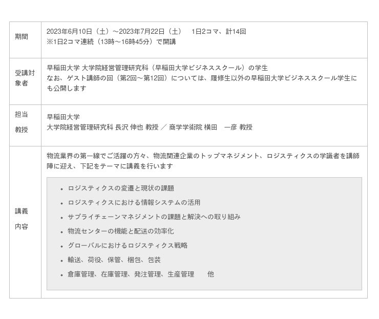 【2023年度早稲田大学大学院商学研究科 プロロジス寄附講座「ロジスティクス・SCM」概要】