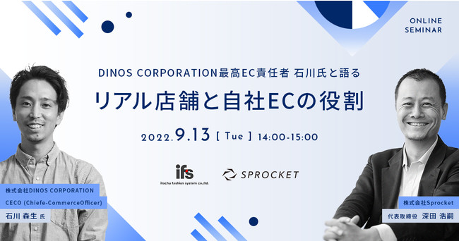 CRO(コンバージョンレート最適化)のためのプラットフォームを提供する株式会社Sprocket(本社:東京都目黒区、代表取締役:深田 浩嗣)は、株式会社DINOS CORPORATION CECO (Chiefe-CommerceOfficer) 石川 森生 氏をお招きし、リアル店舗とECの持つべき役割やビジネスを最大化するためヒントに関するセミナーを2022年9月13日に開催いたします。