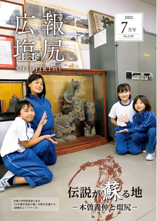 タイトル 広報塩尻7月号「伝説が蘇る地〜木曽義仲と塩尻〜」