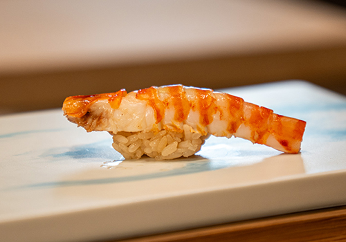 活きた海老を純米酒に漬けることでアクが抜け、身はふっくらとした仕上がりに。ほのかにお酒の香りも感じられます。