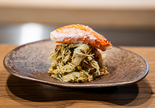 北海道産の大ぶりの毛蟹を蟹味噌とあえた一品。素材の自然な旨味が味わえます。