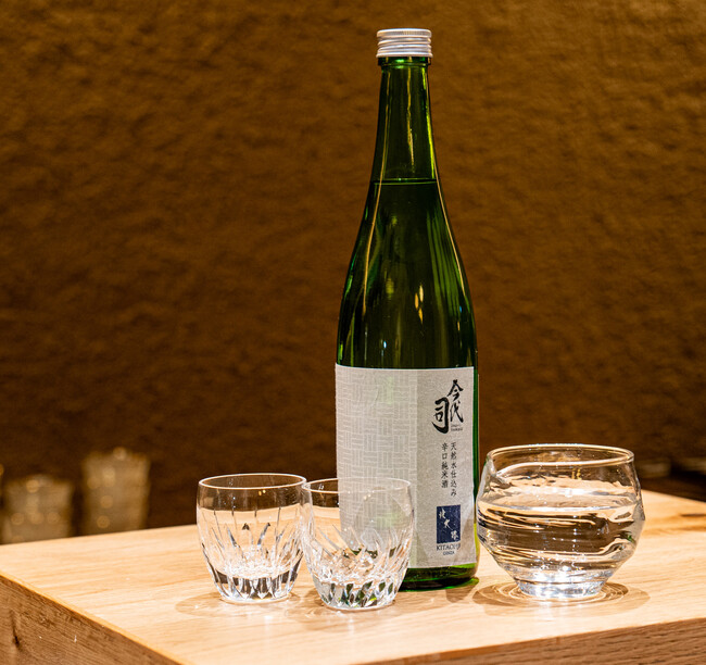 今代司酒蔵は、250年続く新潟県の歴史ある酒蔵です。この数年で造り手も代替わりし若手中心となっており、当社の「若手が作る未来」というコンセプトに共感していただいたことからコラボが実現しました。大川料理長が新潟の蔵に足を運んで今回のコースによく合う味わいのお酒を吟味。育成型寿司屋プロジェクト開始にあわせ「北大路コラボ純米酒 今代司」が完成しました。