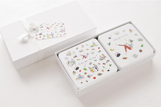 イラストレーター Natsu Yamaguchi(@natsuyamaguchi)氏書き下ろしによる、ティータイムをモチーフにしたイラストデザイン茶缶入り。チーズやクラッカー、フルーツなど、お茶と相性の良いペアリングのモチーフと、お茶を楽しむ様々なシチュエーションをイラストにしました。