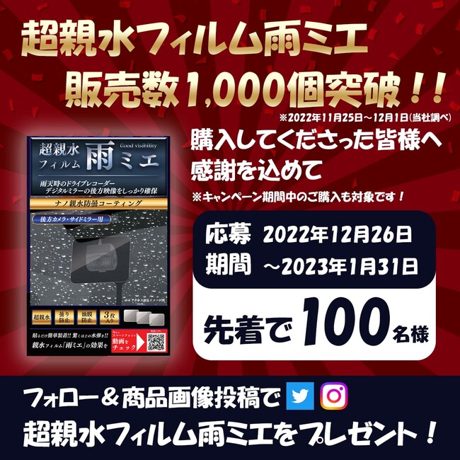 ■対象の方:超親水フィルム雨ミエをご購入いただいた方(キャンペーン期間中のご購入も対象となります)