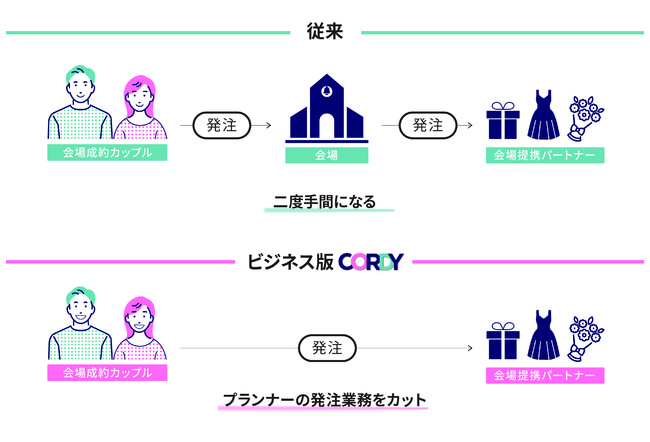 「ビジネス版CORDY」は、アナログなブライダル業界を変革したいという考えから誕生しました。