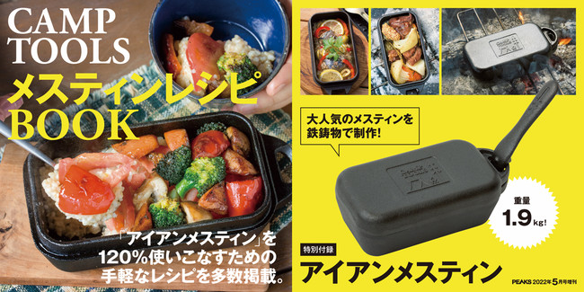 毎年完売のPEAKS増刊『CAMP TOOLS』。今回は鉄製鋳物アイアンメスティンが付録の、アウトドア料理家考案オリジナルレシピブックが発売