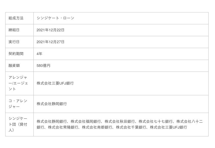 シンジケーション方式での「サステナビリティ・リンク・ローン」契約の締結について