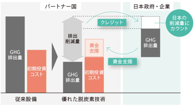 〇二国間クレジット制度(JCM)を活用した脱炭素技術導入の概念図