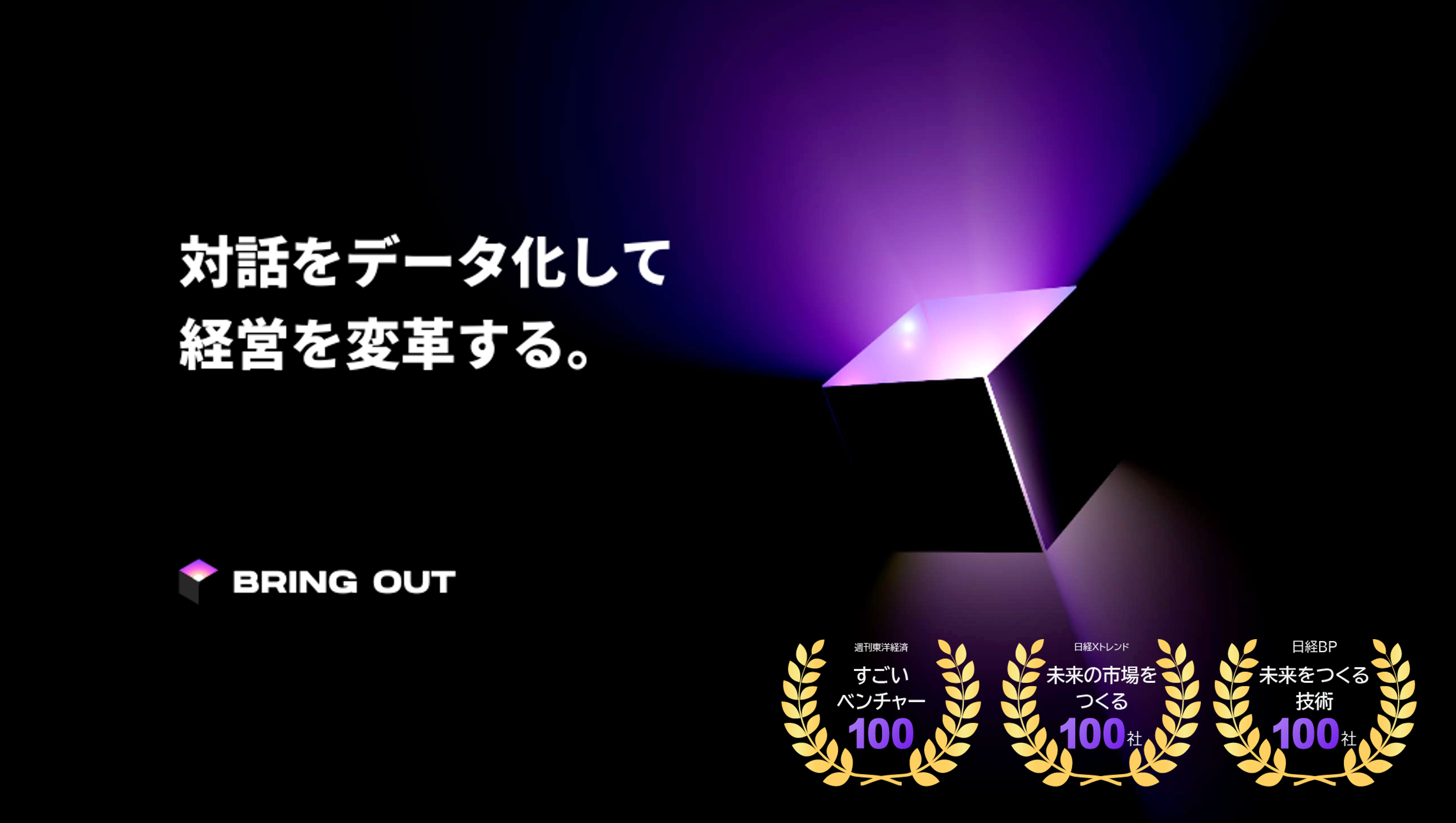 [画像6: https://prcdn.freetls.fastly.net/release_image/77048/41/77048-41-004f4290134f68b815fa2aabbd733b5d-2796x1580.png?width=536&quality=85%2C75&format=jpeg&auto=webp&fit=bounds&bg-color=fff ]ブリングアウトは「対話をデータ化して経営を変革する」ことを掲げ、AIを活用した経営変革を行うAXファーム(AX:AI Transformation)です。