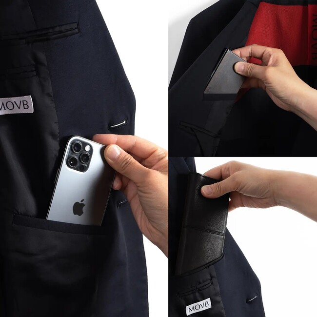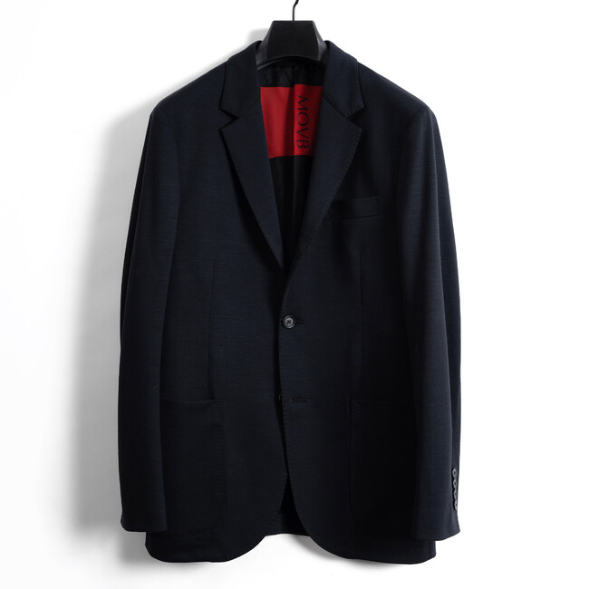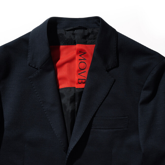 ただし、クラシカルな中にもMOVBらしいモダンな印象に仕上げるため「ラペルデザイン」や「ゴージライン」など、シャープな設計にしています。ラペル幅は太すぎない絶妙な塩梅に。ゴージラインも高すぎず低すぎない設定で、オーセンティックかつモダンな印象が漂う雰囲気に仕上げています。