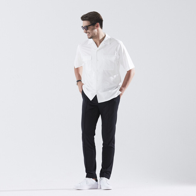 この素材では、ビジネスシーンにも最適なシャツや、トレンド感のある両胸のパッチポケットがアクセントのオープンカラーシャツなどを展開。
