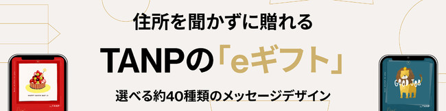 [参照]ギフトEC「TANP」、住所を聞かずに贈れる「eギフト」にて無料で使えるオンラインレターデザインを一新:https://prtimes.jp/main/html/rd/p/000000039.000033774.html