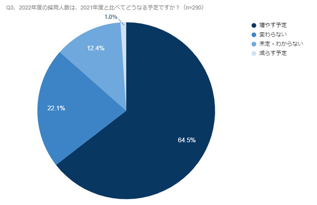 64.5%の事業所が、2021年度よりも採用人数を「増やす予定」