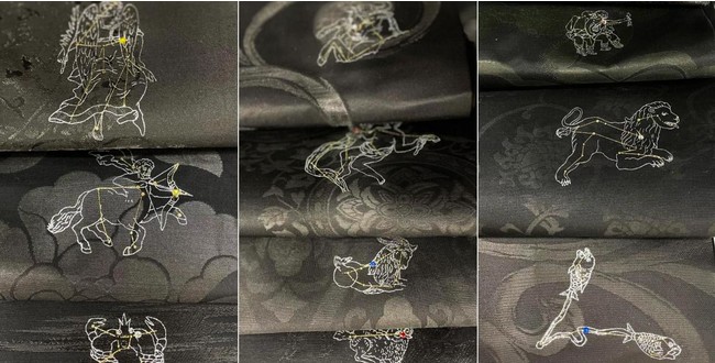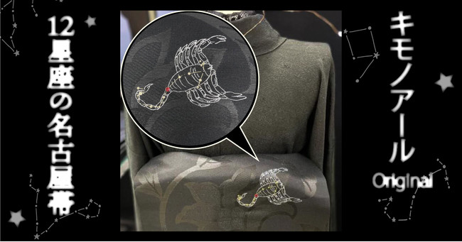 黒染め着物ブランド「Kimonoir(キモノアール)」から「12星座の名古屋帯」が試験販売。各星座につき一点のみの限定品です。