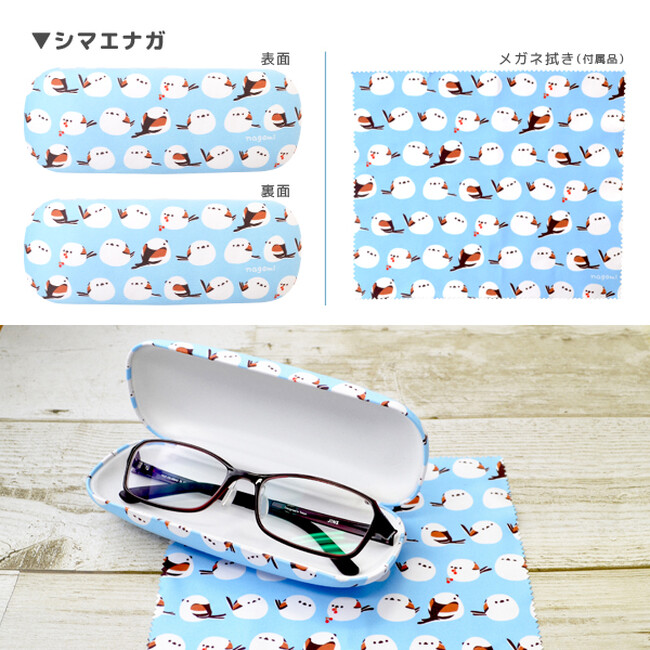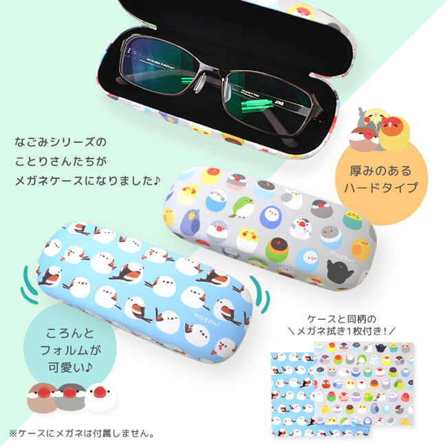 お揃いの眼鏡拭き(マイクロファイバークロス)がついた小鳥さん柄のメガネケースが登場