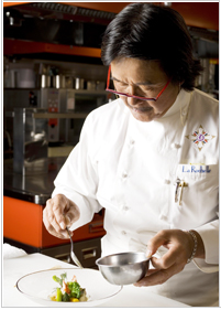 17歳でフランス料理の道に入り、『新大阪ホテル』に見習い入店。その後数々の修行の後1980年に独立し、青山に『ラ・ロシェル』を開店。日本の懐石料理を取り入れた盛りつけ、色使いの美しい料理に定評がある。フランス共和国より農事功労章「シュヴァリエ」受勲。