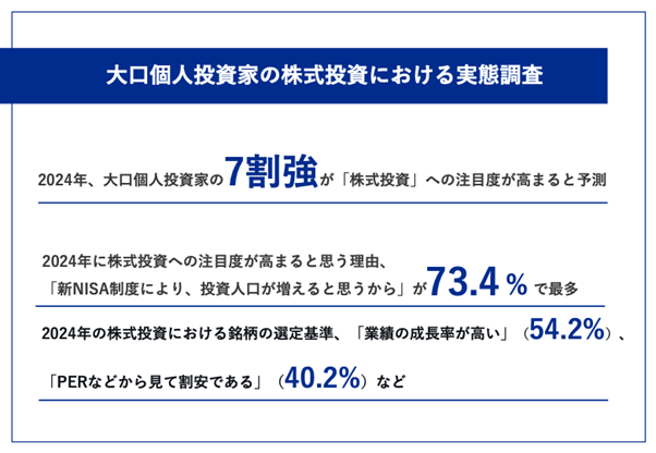 【大口個人投資家に聞く!2024年の株式投資予測】 7割強が「株式投資」への注目度が高まると予測!「新NISA制度」や「円安・インフレ」などが背景に