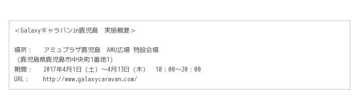 最新スマートデバイスが体験できる全国キャラバン第3弾「Galaxyキャラバンin鹿児島」開催! -アミュプラザ鹿児島にて4月1日(土)から13日間-