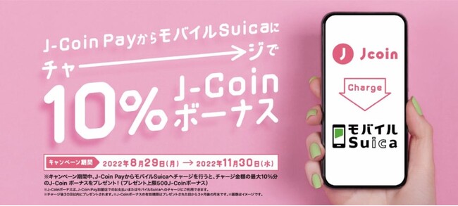 【大好評!!!】「J-Coin PayからモバイルSuicaにチャージで10%還元キャンペーン」は、2022年11月30日(水)まで!!