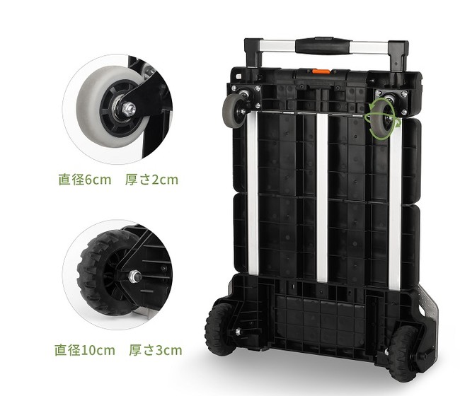 使用は楽になりながら、積載重量も最大200KGを達成しますので、日常生活の買い物、倉庫作業、釣り、引っ越し、旅行、運動会、バーベキュー、キャンプなどのアウトドアシーンでも大活躍します。