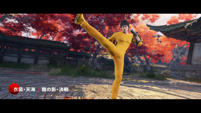 公式衣装は、男女ともに4つずつ用意されています。男性キャラクターの衣装は、ブルース・リーの4つの偉大な映画のキャラクターにインスパイアされて制作しました。『死亡遊戯』(1978年公開)で身にまとっていたブルース・リーを象徴する黄色の武術服や、傷だらけな姿が印象的な『燃えよドラゴン』(1973年公開)の姿も衣装として登場しますよ。