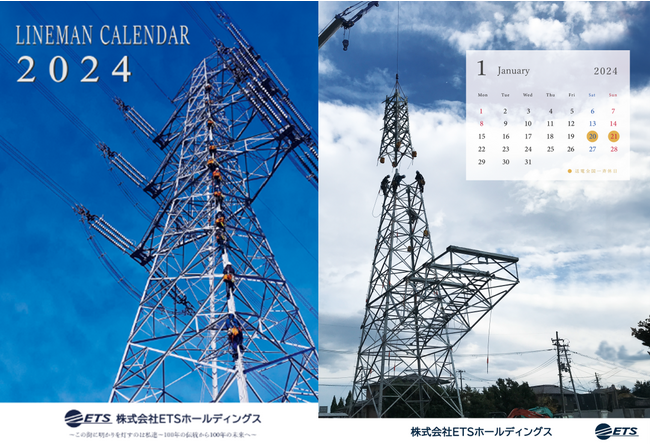 電力事業・設備事業・再生エネルギー事業を展開する電気工事会社の株式会社ETSホールディングス(本社:東京都豊島区、代表取締役:加藤慎章、証券コード:1789、以下「ETS」)は、一昨年と昨年に引き続き、送電線工事を担う「ラインマン」や鉄塔の写真を掲載した2024年のカレンダーを作成いたしました。