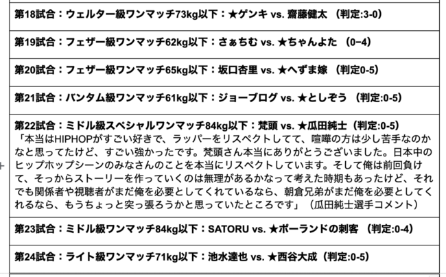 また、他にも「前回出演させていただいた時よりもクオリティの高い試合がたくさん見られて感動しています」(安藤美姫さん)、「今まで見てきた格闘技の中でも一番興奮しました。ありがとうございました。」(明日花キララさん)などのコメントが寄せられました。