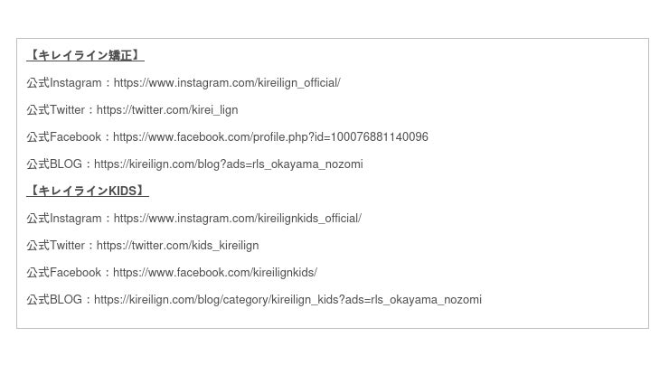 『キレイライン矯正』『キレイラインKIDS』公式SNS