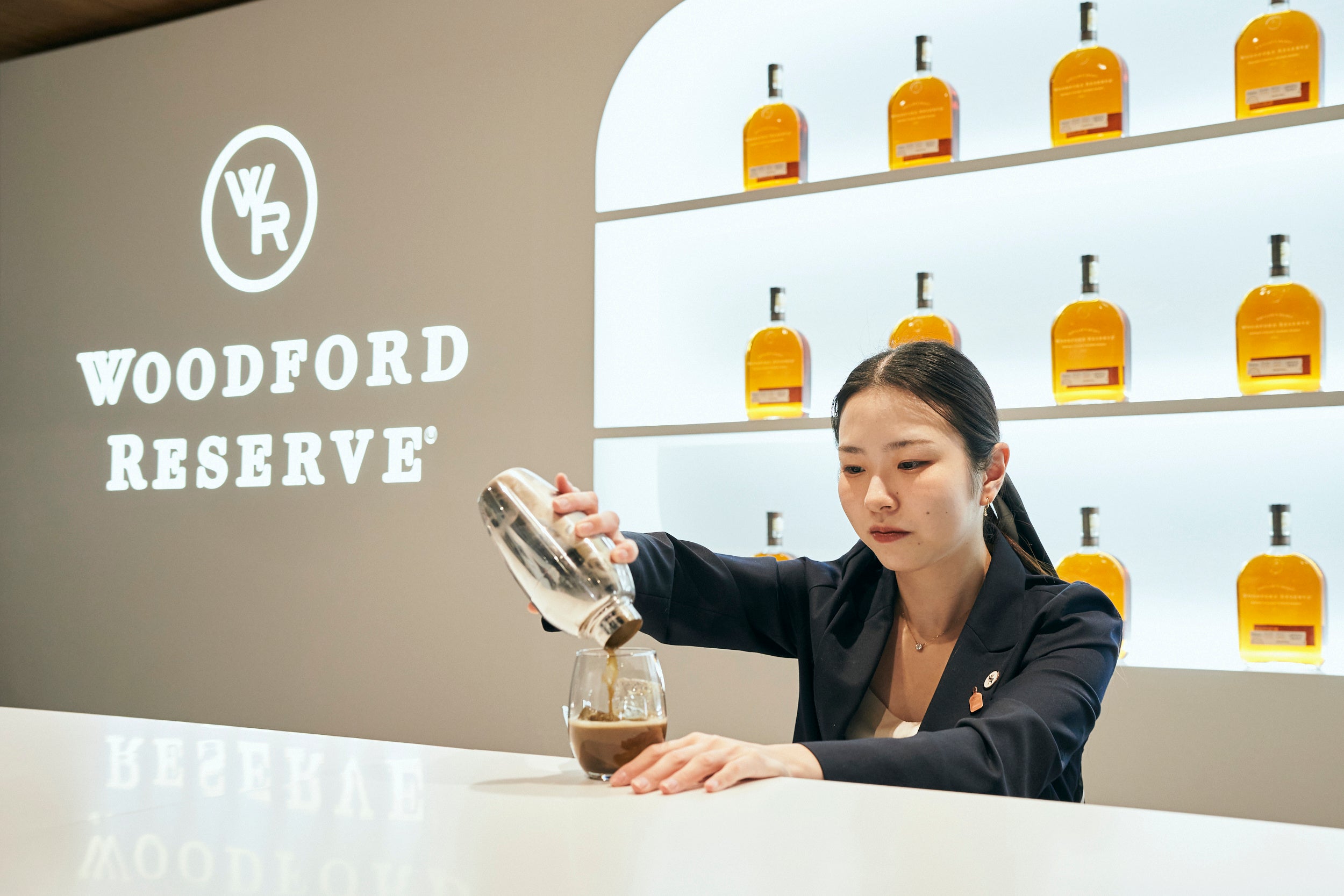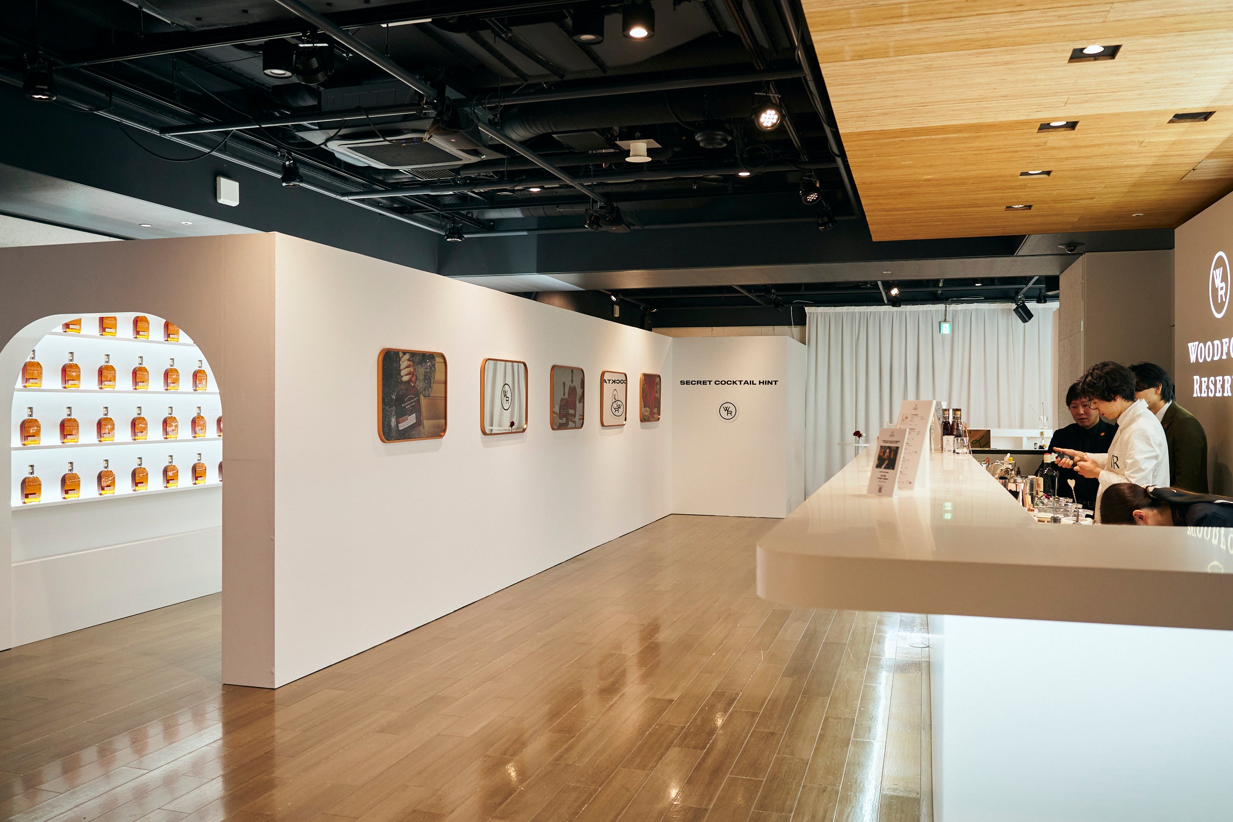 「ウッドフォードリザーブ」の世界観を表現したバー空間。3日間の会期を通じて全15種類の限定オリジナルオールドファッションドを提供します。初日は「My Foolish Heart」、「Pure Imagination」、「Bloomia」、「Stoutish」、「Praline」の5種類のカクテルを提供。また、会場内に設置された“Secret Code”を見つけることで注文できる「SECRET COCKTAIL」も人気を集め、多くの皆様がエリア内での合言葉探しを楽しんでいただきました。