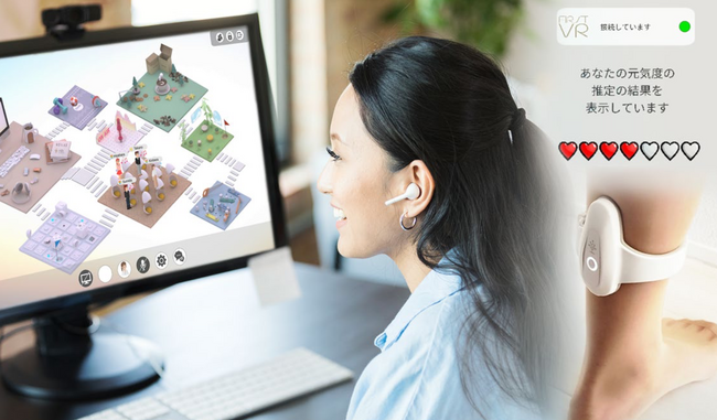 例えば、アバターに反映された元気度やリラックス度を見て、「Aさんは元気度Maxだからこのまま継続して業務を行ってもらおう」「Bさんは元気がないからフォローに向かおう」など、対面で表情や仕草を見ていたときのようなコミュニケーションをすることができます。