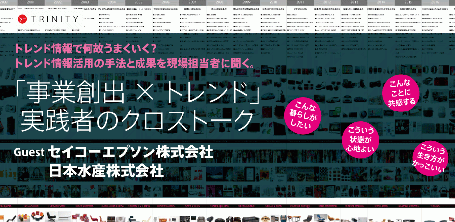 セイコーエプソン、日本水産から登壇。生活者価値観の変遷を捉え価値創造に活かす「トレンド情報を活用した事業創出」をテーマにクロストークイベントを開催決定・受付スタート。