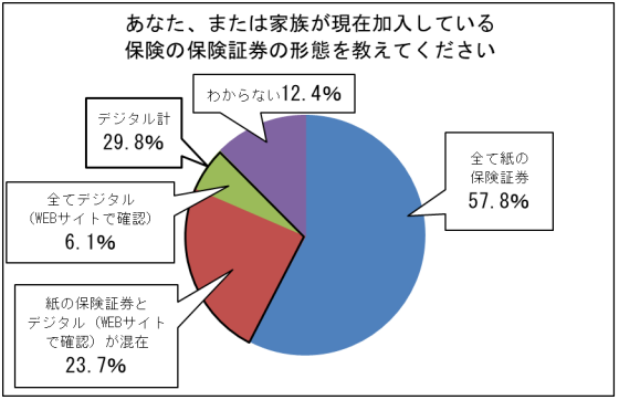 近年では銀行口座と同様、保険証券もデジタル化が進みつつあります。今回の調査では、「紙とデジタルが混在」「すべてデジタル」という人を合わせると29.8%の人が実際にデジタル証券を利用していました。依然、紙の証券の利用者が多いものの、デジタル証券について、55.0%が「紛失や破損の心配がない」、73.5%が「パソコンやスマホでいつでも確認できる」と答えており、多くの人が管理のしやすさにメリットを感じていることがわかります。