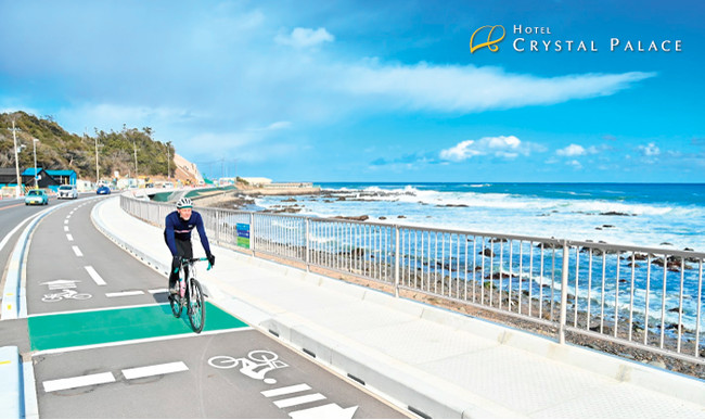 ホテルクリスタルパレスは県が定める4つのサイクリングルートのうち、茨城空港(小美玉市)から茨城町、水戸市、ひたちなか市、大洗町、東海村を経て日立市に向かう約95キロのルート『大洗・ひたち海浜シーサイドルート』の認定施設です。