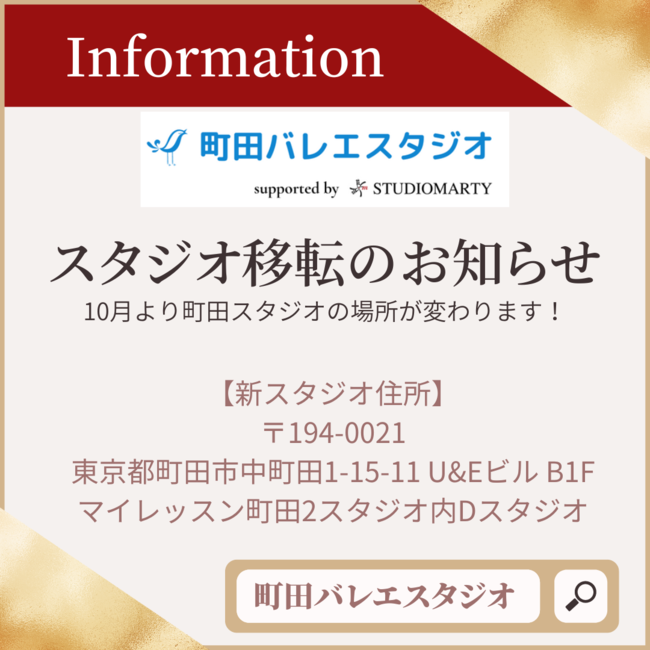 【町田バレエスタジオ】10月よりスタジオ移転のご案内