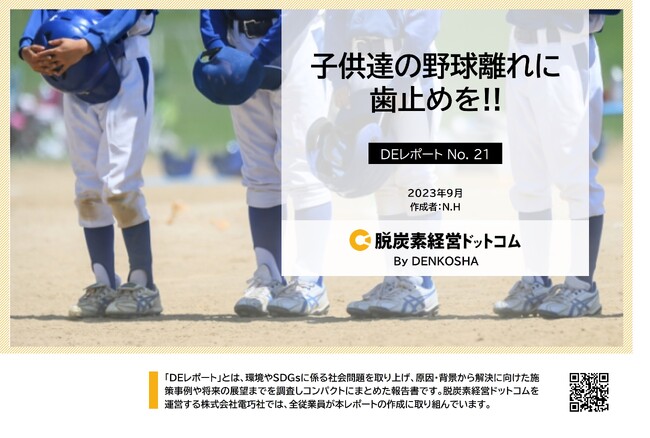 第21弾は「子供達の野球離れに歯止めを!」。第5回ワールド・ベースボール・クラシック(WBC)での日本の優勝や大谷翔平選手の活躍などにより、野球人気が高まっていますが、その影で子供達の野球人口が急激に減少している事実をご存知ですか? 少子化だけでない、様々な減少理由とその解決策について、レポートにまとめました。