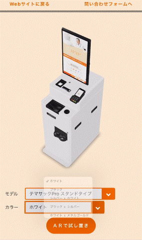 WebARの技術を使用することで、「テマサック」の豊富なカラーバリエーションの中から、病院やクリニックの雰囲気に合う色を選択し、3Dモデルをスマートフォン上で立体的に表示し、実際に配置する場所に試し置きをすることができます。