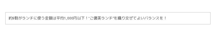 出勤日のランチについて、1回あたりの平均金額は男女ともに1,000円以下の人が約9割と多いことが、判明しました。
