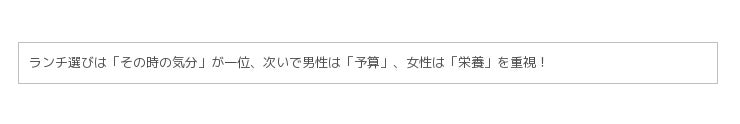 ランチに何を食べるか考える際に重要視するポイントに関して、男女ともに「その時の気分」と答えた人が全体の半数以上に上りました。「気分」に次ぐ答えとして、男性は「金額が予算に見合うかどうか」、女性は「栄養が十分かどうか」が並び、答えが割れる結果となりました。