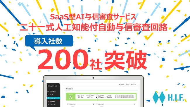 AI与信審査技術の開発と提供及び同技術を用いたFintechサービスの提供を行うH.I.F.株式会社(本社:東京都新宿区、代表取締役CEO:東小薗光輝、以下H.I.F.)は、2023年4月24日(月)、SaaS型のAI定性与信審査サービス『二十一式人工知能付自動与信審査回路』(以下、二十一式)の導入社数が200社を突破したことをお知らせいたします。