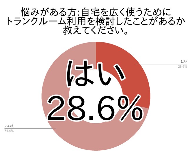 アンケートでは、3割弱(28.6%)の方がトランクルーム利用を検討したことが分かりました。