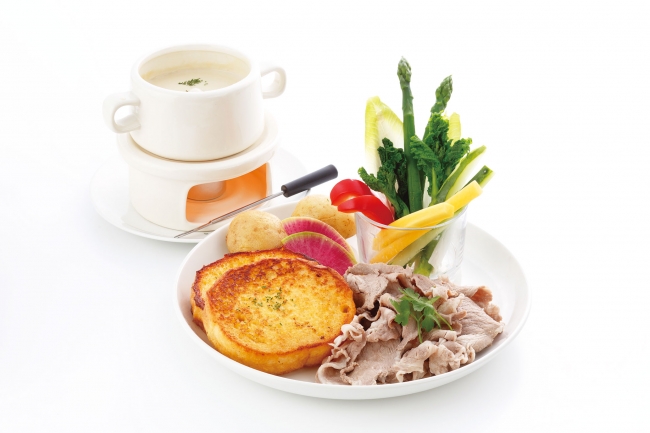 新鮮な野菜と豚肉を、福岡の美味しい食材、 「糸島産」で揃えました! アンチョビとガーリックが効いている バーニャカウダにディップして お召し上がりください。※写真はフレンチトースト2枚