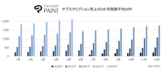 CLIP STUDIO PAINTのサブスクリプションモデル契約数およびARRの推移については、グループ会社であるアートスパークホールディングス株式会社のコーポレートサイトの「月次事業進捗レポート」で毎月公開しています。