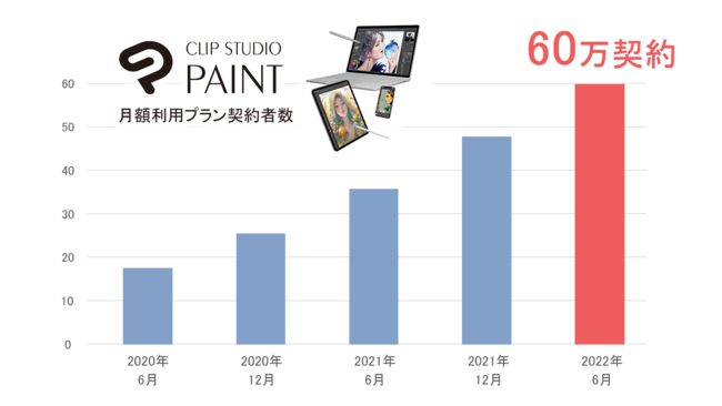 イラスト・マンガ・Webtoon・アニメーション制作アプリ「CLIP STUDIO PAINT」の全世界におけるサブスクリプションモデルの契約数が60万契約に